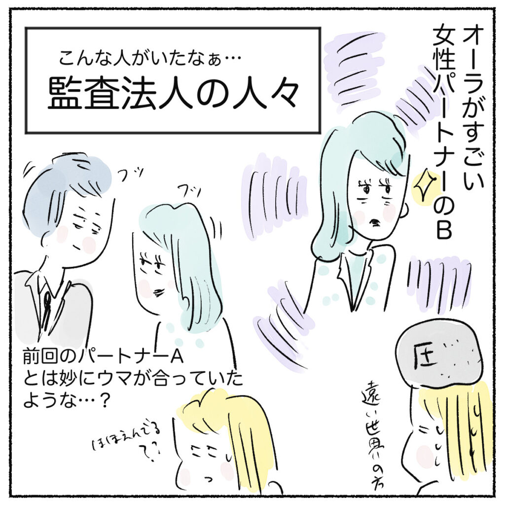 スポンサーリンクおすすめ記事漢検は親子の勉強の取り組みにちょうどいい5人目!アラフォー妊娠日記 まもなく7ヶ月目だわ!【身体によいおむすび作ろう】子供達と餃子と在宅勤務5人目!アラフォー妊娠日記 6ヶ月目となりました 監査法人の人々〜こんな人がいたなぁ〜女性パートナーのBさんと秘書のCさん2023.01.14スポンサーリンク監査法人の人々〜女性パートナーBさんと秘書のCさん あとがきなかなか自分の将来の姿を想像できるようなロールモデルに会えない?? いや、自分らしくあればいいのよ!! ※この漫画は作者の思い出補正がされています。ほぼフィクションとして捉えて下さいね♪0