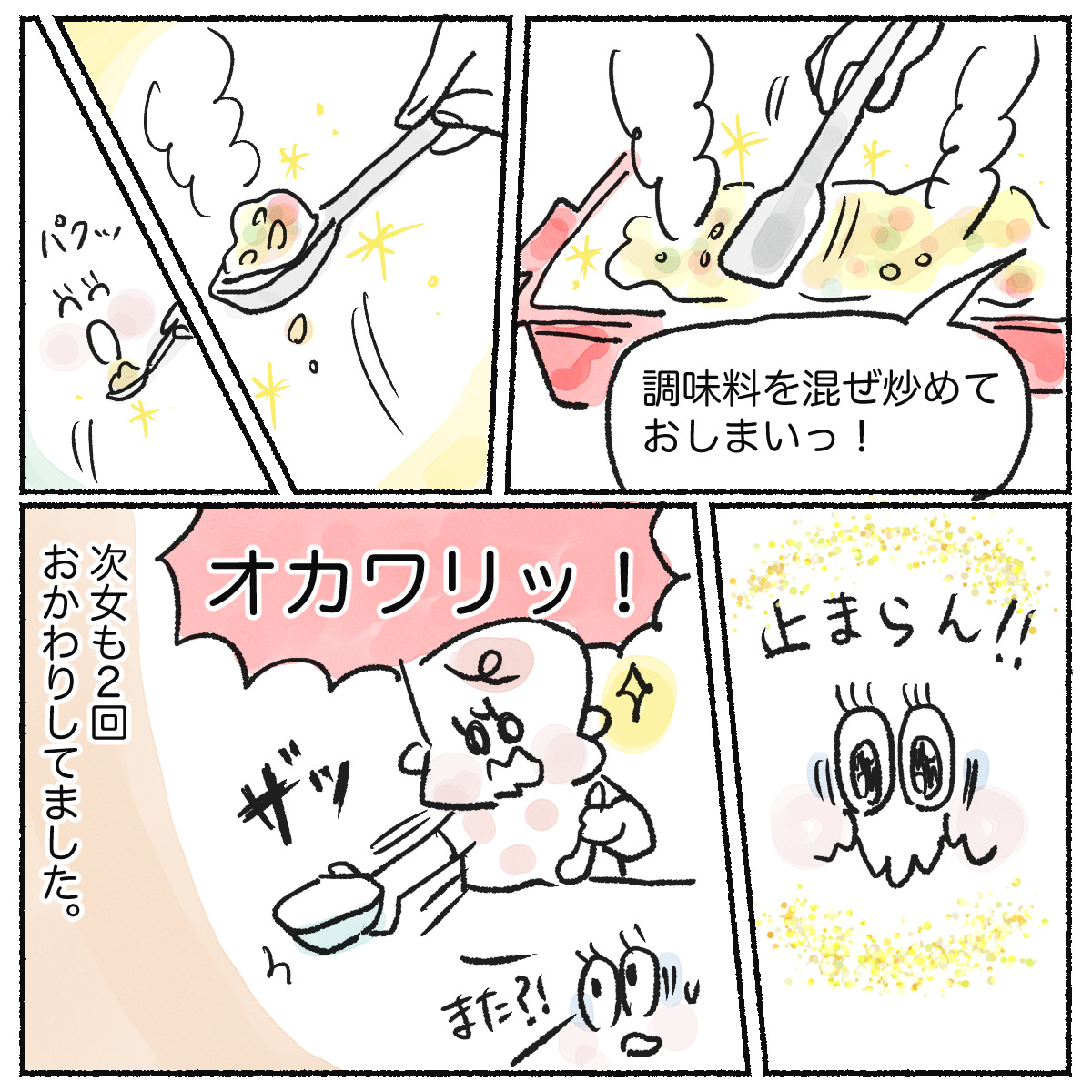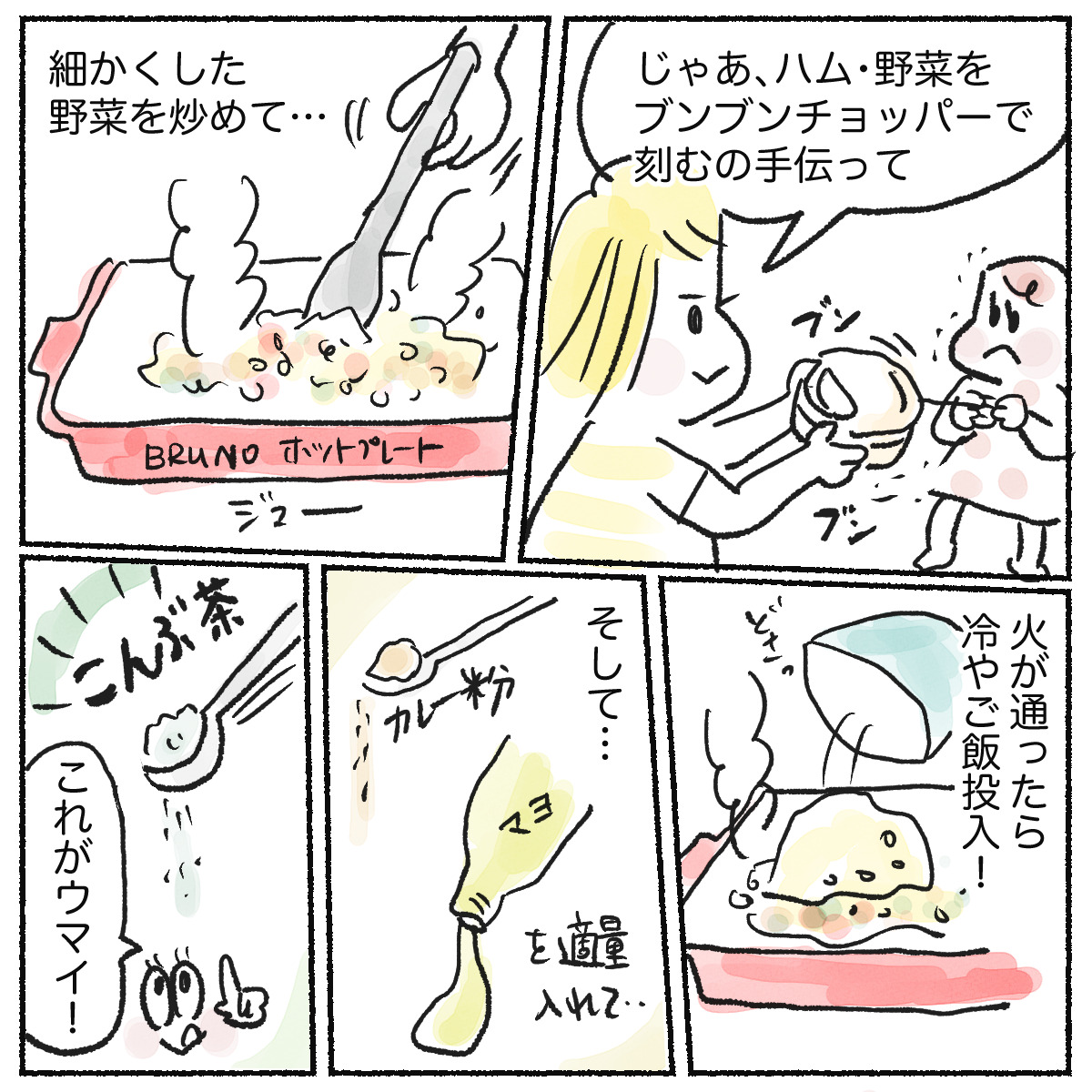 スポンサーリンクおすすめ記事漢検は親子の勉強の取り組みにちょうどいい5人目!アラフォー妊娠日記 まもなく7ヶ月目だわ!【身体によいおむすび作ろう】子供達と餃子と在宅勤務5人目!アラフォー妊娠日記 6ヶ月目となりました 【ご飯漫画】我が家のカレーピラフ2023.07.12スポンサーリンク漫画 コラムこれもささっとホットプレートで、あまり野菜と冷やご飯で作れちゃう美味しいメニューでした。 休日のやる気ないランチにもいい😊冷やご飯、あまり野菜、ハム等とカレー粉、マヨネーズ、そして昆布茶があればなおイイ! 昆布茶がなければ、塩とか鶏がらスープの素でも良いと思う。 とにかく旨みとして昆布ちゃは絶妙なので、時折使います😊 0