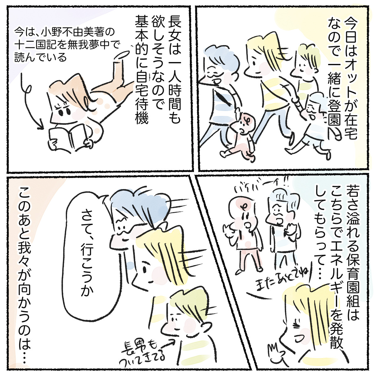 私と長男はもうしばらく残って、宿題したり漫画を描いたりします。