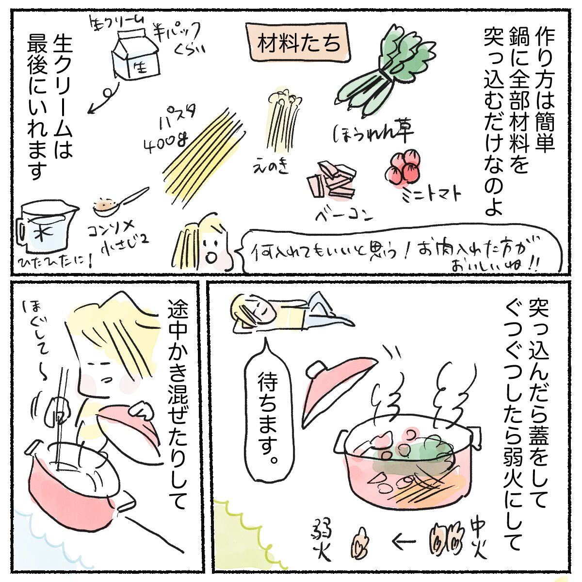 過去にツナとトマトを鍋に突っ込んで作るパスタの漫画を描きましたけど、